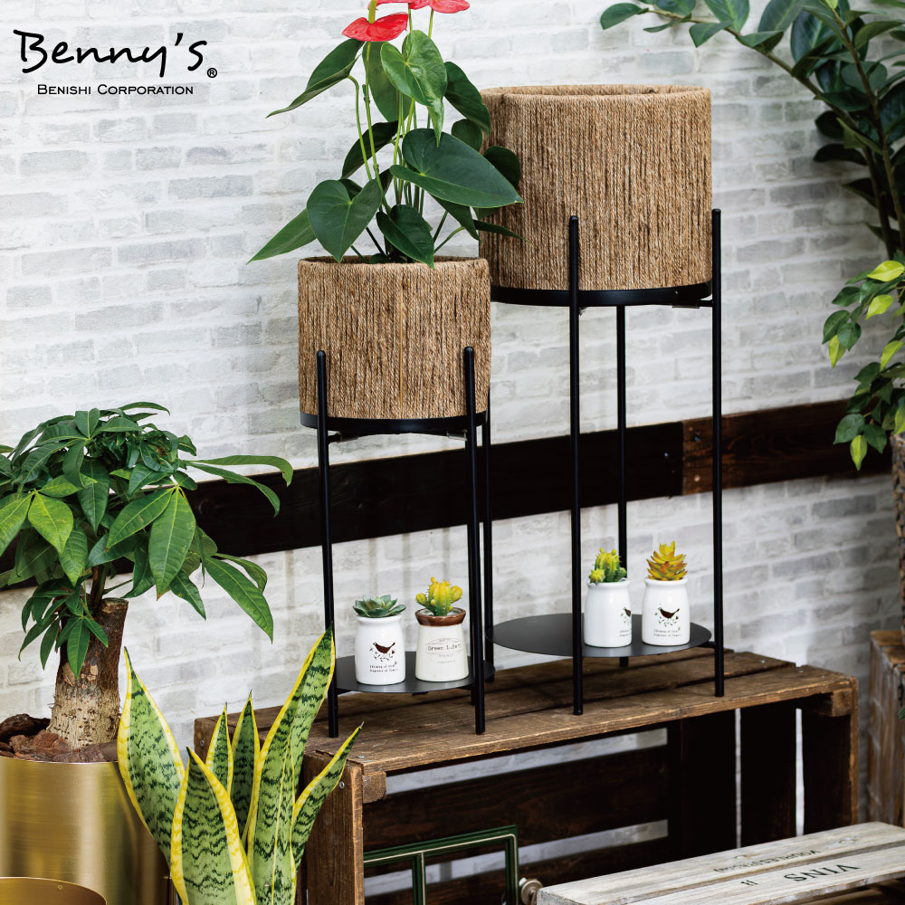 温かみのある麻が、グリーンを優しく包み込む…素朴さとシャープさが調和するプランタースタンド。