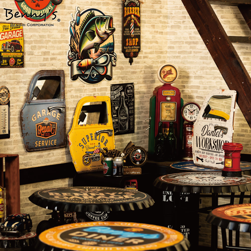 まるで本物のヴィンテージカーの一部を切り取ったような、車のドア型レトロプレートミラー。 ミラーとしての機能はもちろん、ガレージインテリアやショップディスプレイにも抜群の存在感を発揮します。 色・デザインは3種類。自宅の玄関、カフェの壁面、カーショップの演出など、 遊び心と個性を求めるあなたにおすすめの逸品です。 |