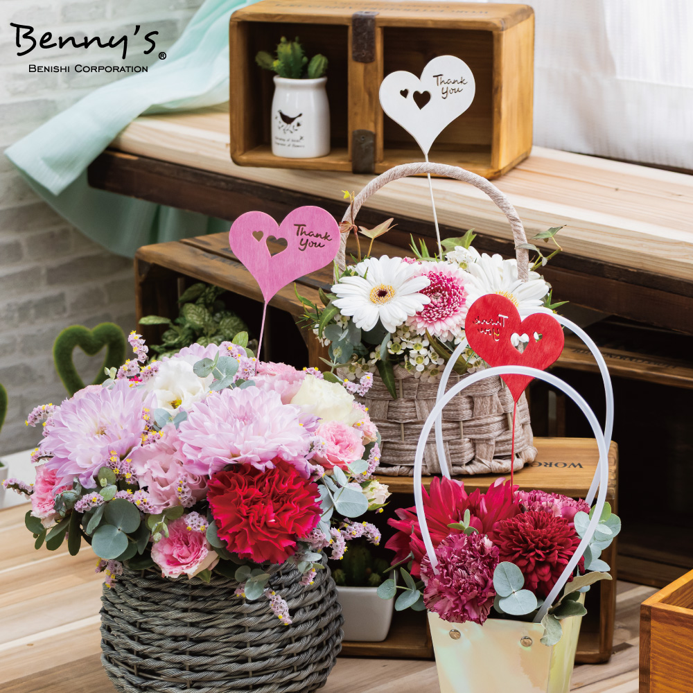 ちょっとした贈り物にも、ありがとうの一言を添えるだけで印象はぐっと変わります。 このフラワーピックは挿すだけでワンランク上のギフト演出が可能です。 カラーも3色展開で、あらゆる「ありがとう」の場面で大活躍です。 |