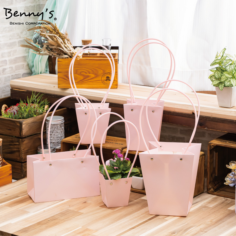 | このクラフトベースは、ちょっとしたギフトをより上品に見せてくれる万能アイテム。 持ち手付きで持ち運びやすく、内側はしっかり防水仕様なので、お花や観葉植物のプレゼントにも安心です。 |