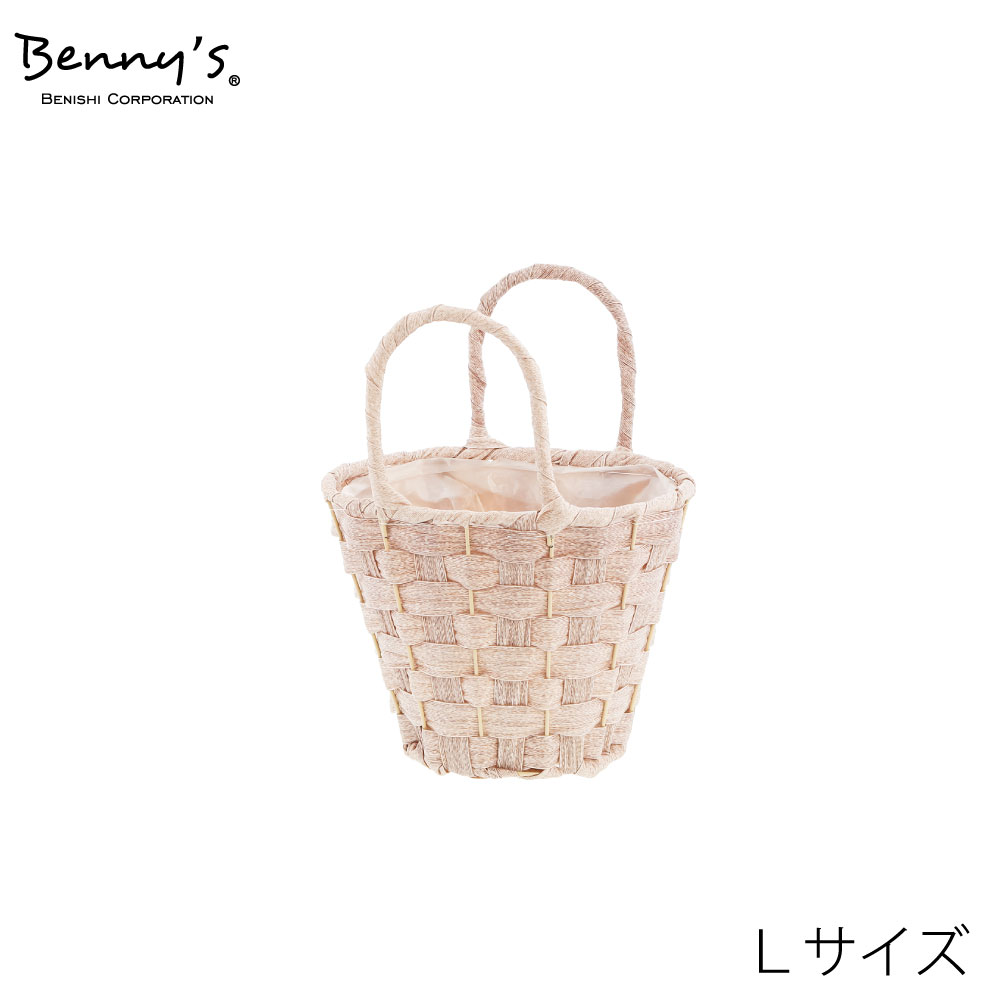 | 明るいナチュラルカラーの素材を丁寧に編み込んだ、ハンドル付きバスケットです。 内側にはPPライナー(防水ビニール)が付いているため、季節の花苗を入れたり、フラワーアレンジメントの器としても安心してご使用いただけます。 |
