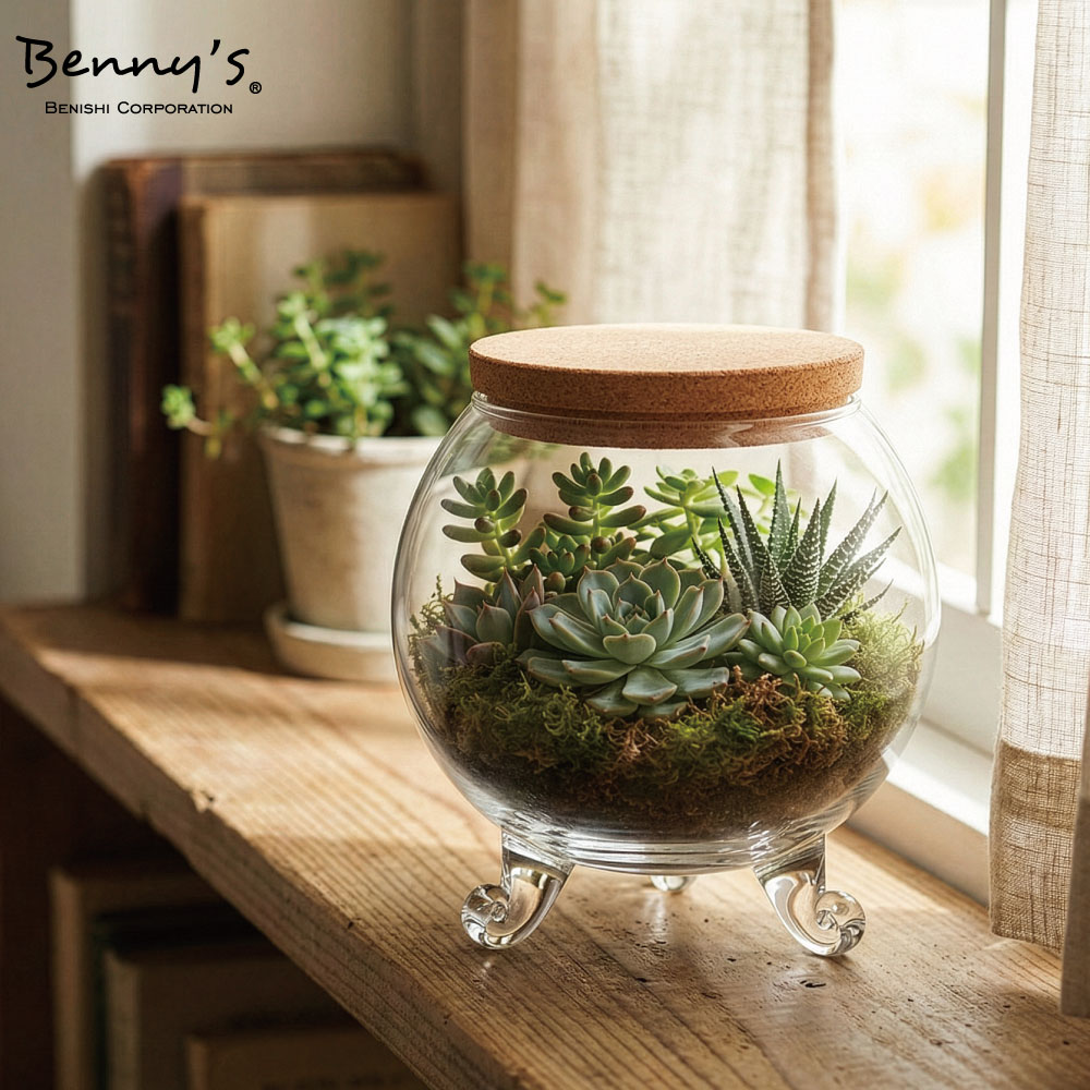 脚付きで少し高さが出るため、テーブルに置いた時にベタッとならず、空間に軽やかな浮遊感とリズムを生み出します。 別売りのコルクキャップを合わせれば、ホコリを防ぐ蓋付きボトルに早変わり。 ドライフラワーの保存や、LEDライトを入れたボトルランプの制作など、幅広い用途にご提案いただけます。 |